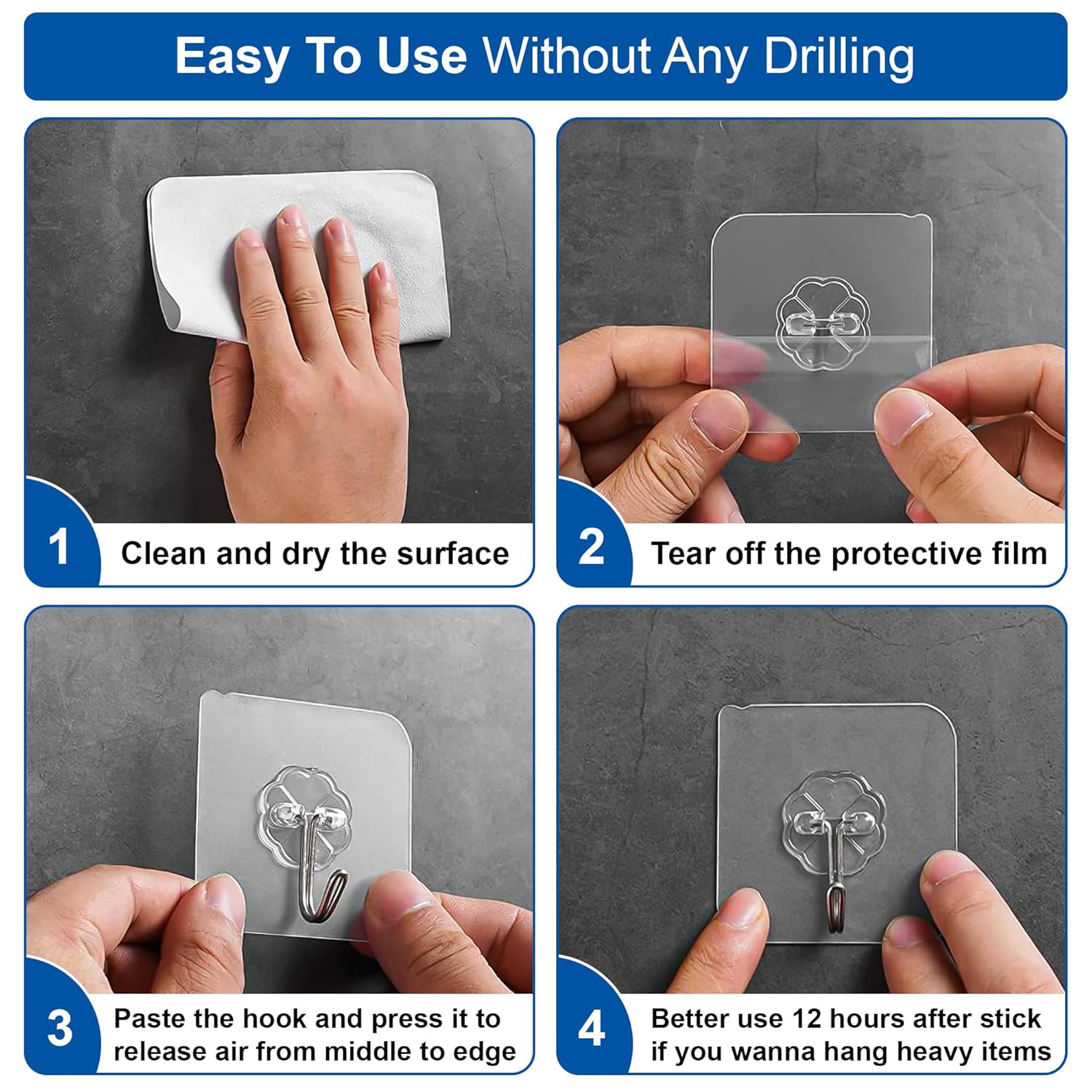 These hooks feature a simple wall-mount design—no nails, no screws, and no drilling required. Perfect for rented homes and surfaces you want to protect from marks or holes.